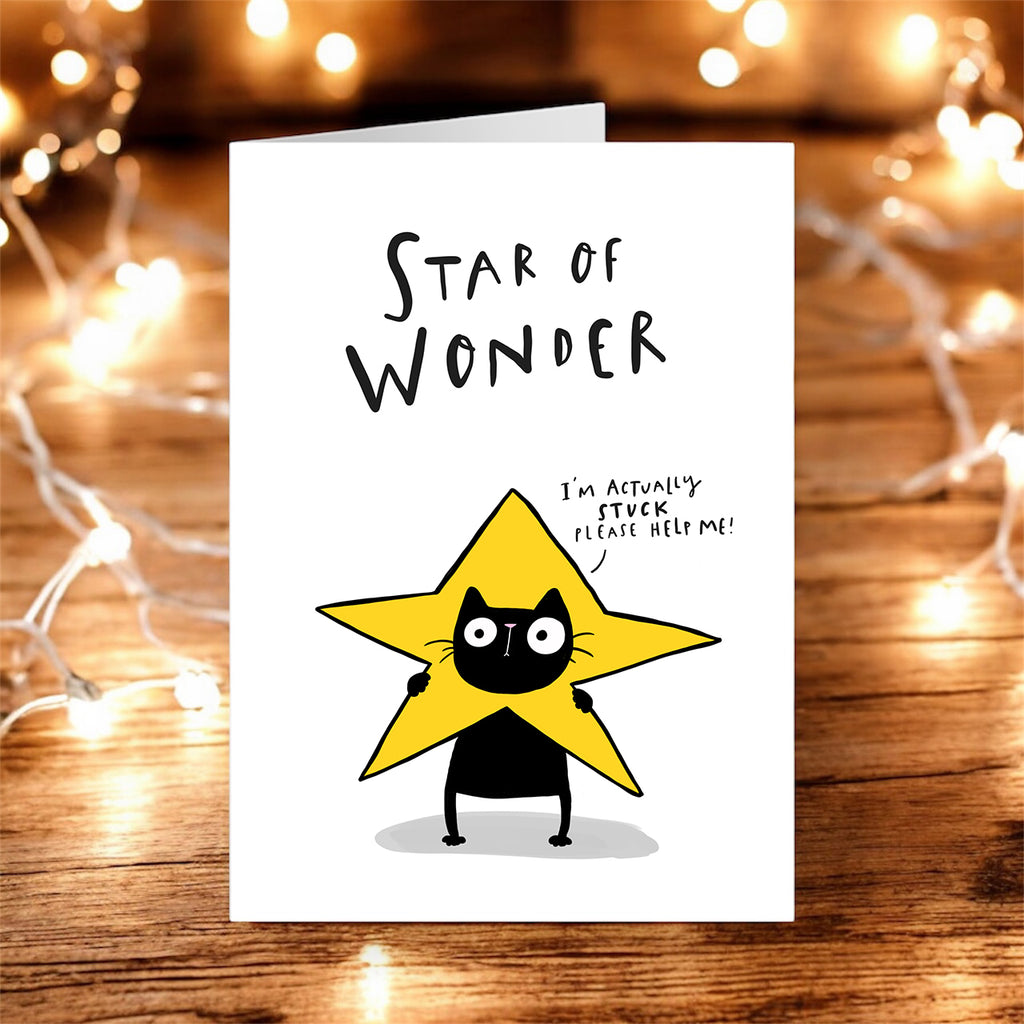This naughty cat has attacked the Christmas tree and got his head stuck in the star!