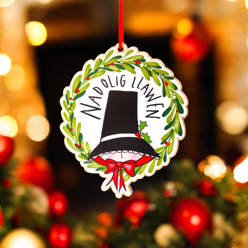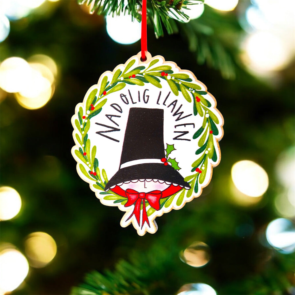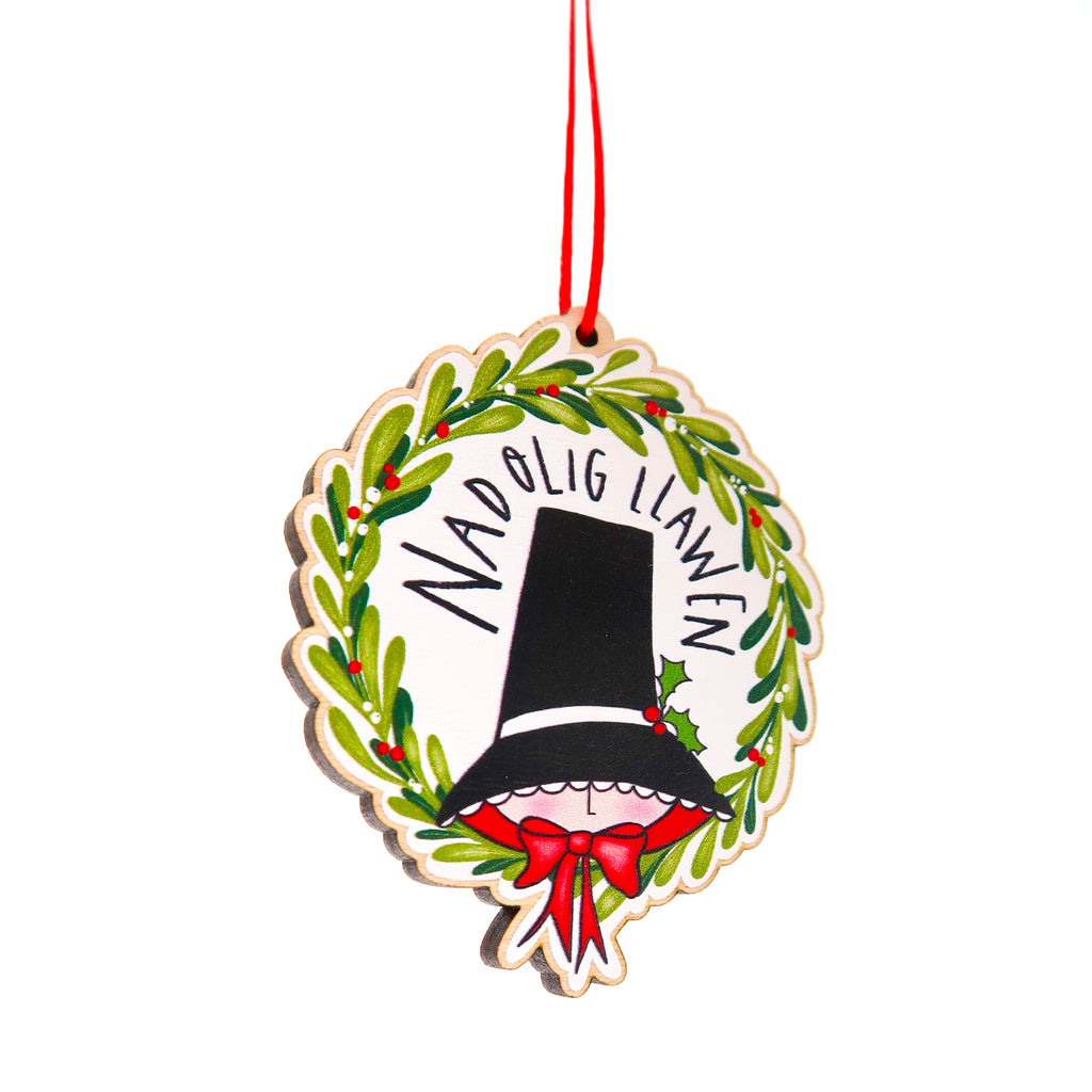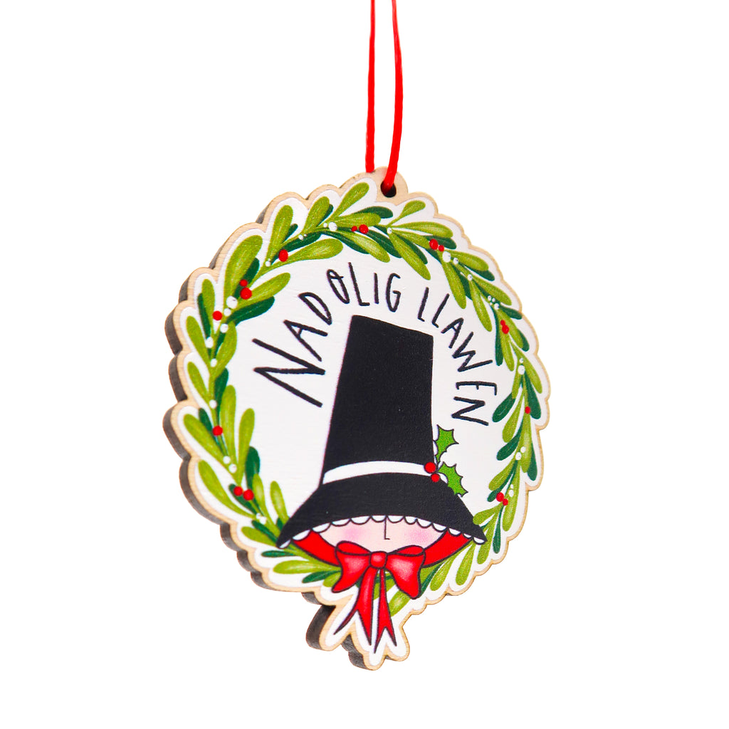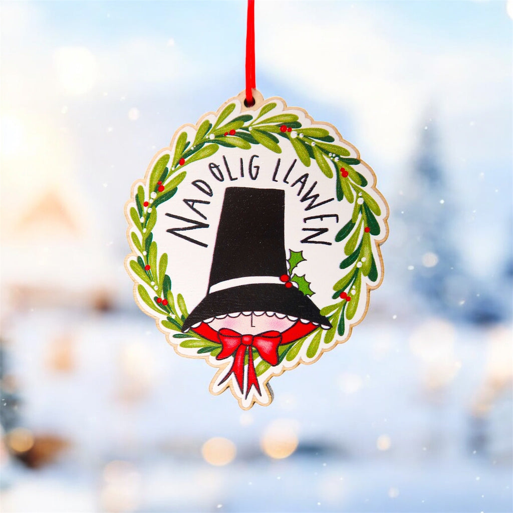 This Nadolig Llawen Christmas tree decoration features a beautifully illustrated traditional Welsh lady, a warm nod to Welsh heritage and festive spirit. Perfect for sending love from Wales or to anyone who cherishes Welsh culture!